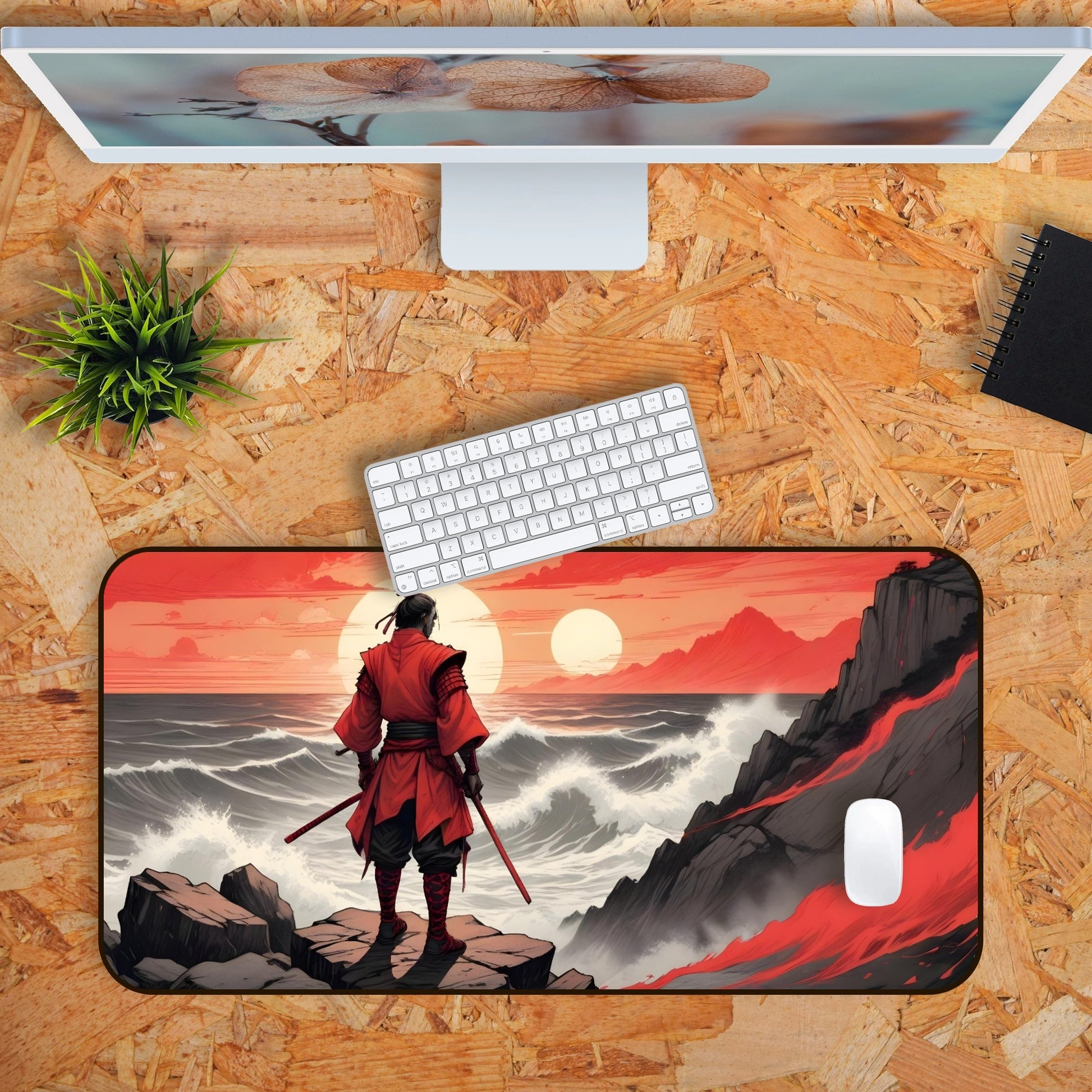 Transform your gaming setup into a dojo with our Anime edition Samurai Gaming Deskmat. This 23" x 11" non-slip rubber mousepad and deskmat features a premium print of samurai and swords, adding a touch of warrior spirit to your game. The 3mm thick, durable quality ensures long-lasting use. (Prepare to conquer your gaming enemies with this warrior-inspired deskmat!)
